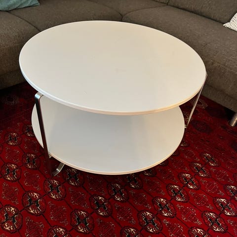 Selger et fint bord med ileggsplate. Fargen er hvit.