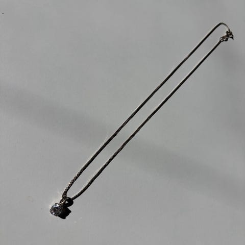 halskjede, smykke, anheng, krystall, rhinestone, stener, blanke stener, sølvfarget, minimalistisk, enkelt smykke, elegant, vintage, retro, dame smykke, accessories, mote, klassisk, pynt, hverdagsmykke