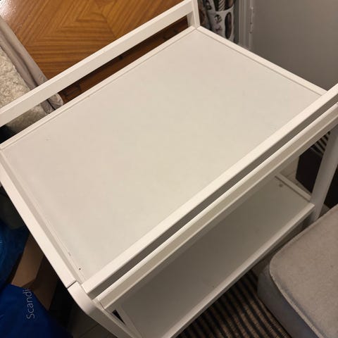 stellebord med integrert badekar og oppbevaringsrom. Fungerer som det skal, men noe skjønnhetsfeil.