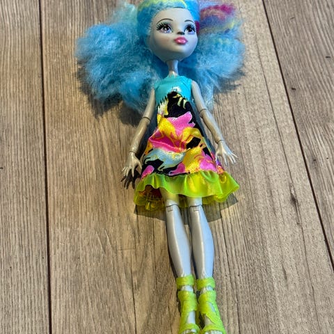 Monster High dukke stativ i klar plast, Inkluderer base, justerbar støtte og klemme for å holde dukker på plass. Egnet for visning og oppbevaring av dukker.