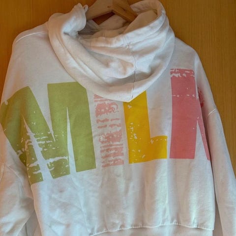 Selger denne knalltøffe hettegenseren fra Milk atelier i str XS. Denne er veldig romslig på str