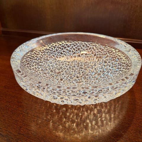 Dette er en Glass skål fra «Svalbard»Serien laget av Willy Johansson som jobbet på Hadeland Glassverk.
