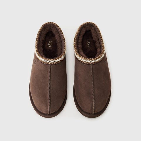 UGG Tasman tøfler og tresko i størrelse 43, Chestnut farge. Laget med materialer som gir komfort og varme, egnet for innendørs bruk eller lett utendørs bruk. Designet for å gi støtte og isolasjon for føttene. Kjøpt et nr for stor