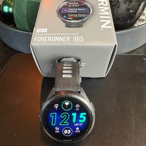 Pent og lite brukt Garmin Forerunner 965. Kjøpt ny i juni 2025. Ingen riper/merker i skjermen. Skjermbeskytter på klokken, som har vært på siden den ble kjøpt. Lader og digital kvittering medfølger.