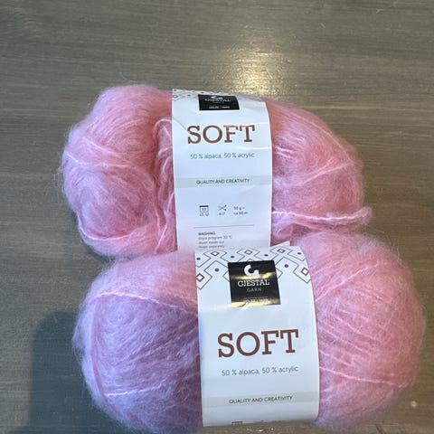 DROPS Kid-Silk garn i rosa farge. Garnet består av 75 % mohair og 25 % silke, og er egnet for strikking og hekling av lette og luftige plagg.