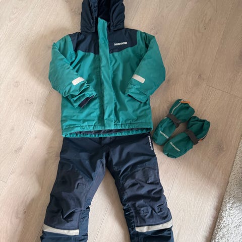 Buksen bærer preg av bruk, men fungerer et par sesonger til. Settet har vært vasket med impregnering, men ikke etter forrige sesong.