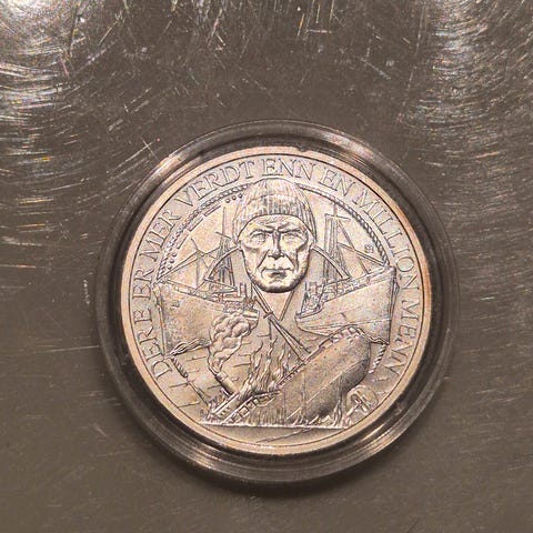 Medaljen er laget av kobbernikkel, har en diameter på 38,61 mm og veier 25,18 gram.