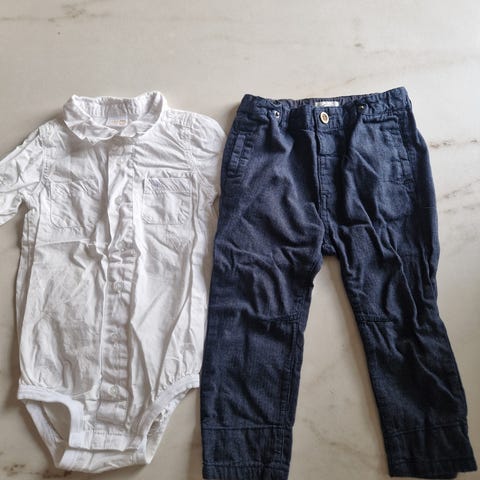 Skjortebody fra det norske kvalitetsmerket Memini og olabukse fra Lindex. Body veldig pent brukt (2-3 ganger) og buksa er kun tatt av lappen. Begge str 74. Perfekt til jul, 17.mai og andre festlige anledninger. Stilig og komfortabelt.