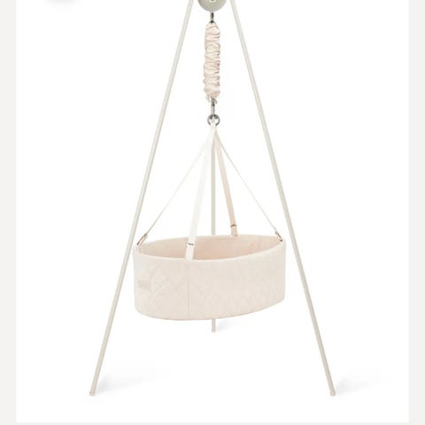 Moweo Bedside Crib i nydelig rosa farge. Barneseng designet for å plasseres ved siden av voksenes seng. Laget med stoffmaterialer og nettpaneler for ventilasjon. Justerbar høyde og stabil ramme i metall for sikker bruk.