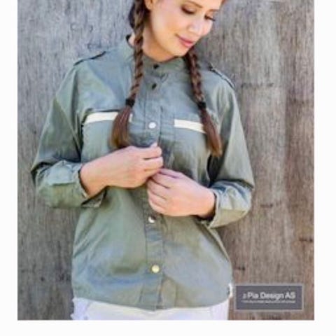 Skjorten har en mandarin-krage, lange ermer som kan rulles opp, og vakre detaljer som gjør den både kul og feminin 💫
