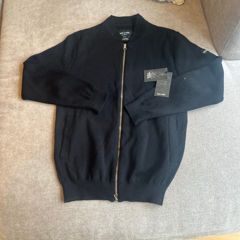 Ny med lappe på, veldig fin lys marineblå farge