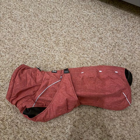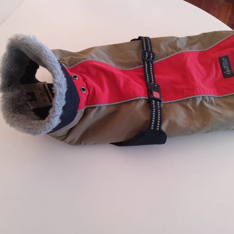 Ubrukt dekken fra Hurtta "Winter Jacket". Er litt pels inni etter å ha blitt prøvd på en Golden Retriever. Men ellers ikke vært noe i bruk og lappen er fremdeles på. Str 75cm. Ny pris var 759kr
