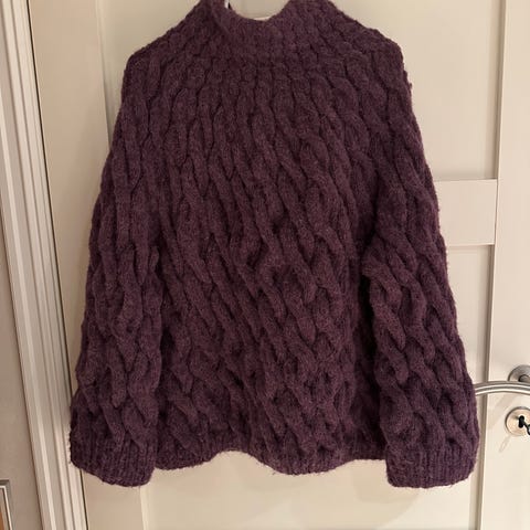 Strikket i babyull så klør ikke. Lett og fin genser i str M. Farge lys beige.
