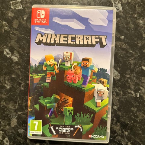Minecraft Nintendo Switch spill. Et populært sandkassespill som lar spillere bygge og utforske virtuelle verdener. Passer for alle aldersgrupper og støtter flerspillerfunksjoner.