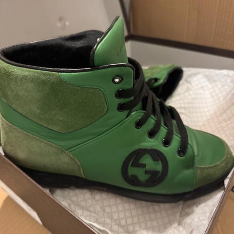 Gucci Ace sneakers i rød skinn selges. Synlig brukt innvendig men ellers ganske OK. Eske, støvposer og ekstra lisser følger med. Kjøpt på gucci butikk i Oslo
