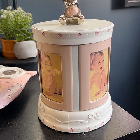 Rosa smykkeskrin til barn, med lyd. Aldri brukt, kunn ligget i pakken. Kjøpt på Askeladden gullsmed.