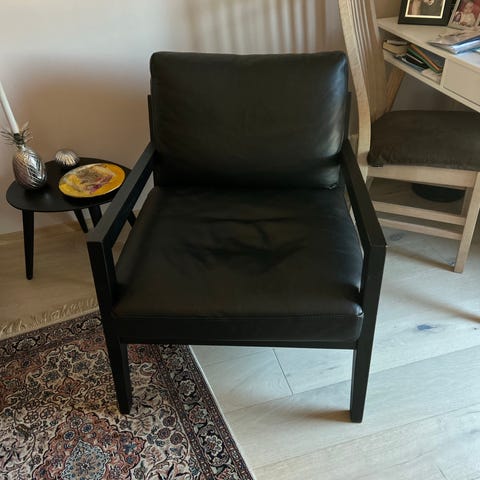 Eikund Broadway lenestol vurderes solgt. Stolen har vært i sporadisk bruk, og har noen bruksmerker som fremkommer på bildene.