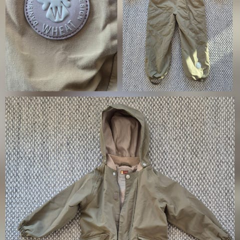 Wheat parkdress 110. Dressen er pent og lite brukt. Ingen rifter eller hull, men har noen flekker etter lek i sand, spesielt på knær og rumpe. Har ingenting å si for bruken. Se bilder. Veldig fin blå farge på dressen
