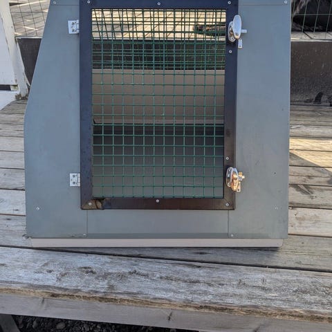 Bur laget av metallramme med nettingvegger. Har låsemekanismer foran for sikker lukking. Egnet til bruk for smådyr eller transportformål. Farge: grå og svart. B52 H48 D65