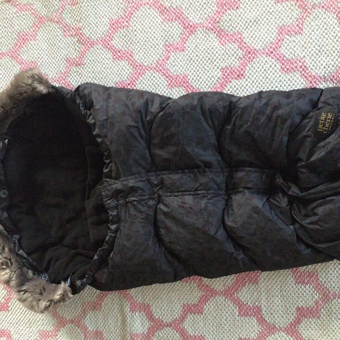 Vogn og bilstol pose til baby , sort m fuskepels som kan taes av . Liten str ,