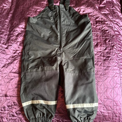Svart vinterbukse i størrelse 128 fra hm. Tykk og solid. Refleks har løsnet litt.
