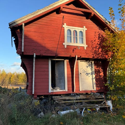 Kjøpt for å ha som nissehus for mange år siden.Ikke brukt.Kan ta av tak og 1 etasje for å innrede etc.