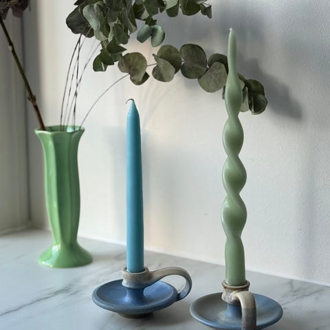 To stk lysestaker i keramikk fra det franske merke Gien - Oiseuaux de paradiso.