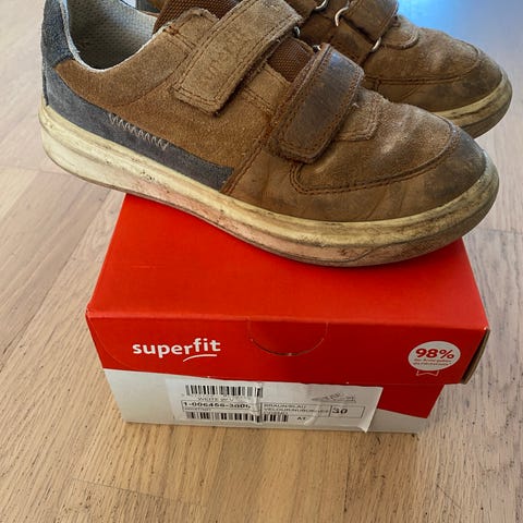 Superfit barne sko i størrelse 29 for gutt. Skoene er brune og laget i slitesterkt materiale. De har borrelås for enkel justering og påkledning. Egnet for daglig bruk.