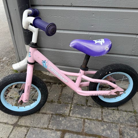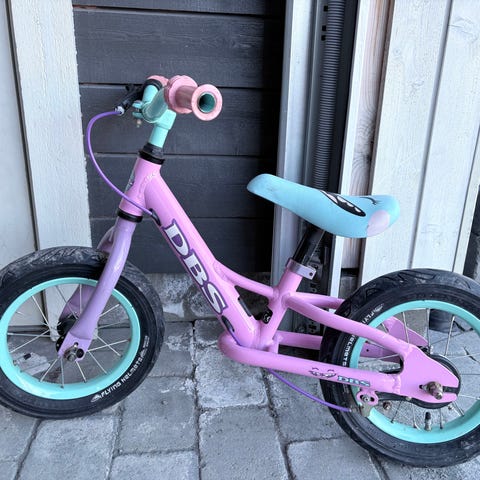 DBS balansesykkel med 12 tommers hjulstørrelse. Sykkelen er godt brukt, men er full funksjonsdyktig og med brems. Må hentes.