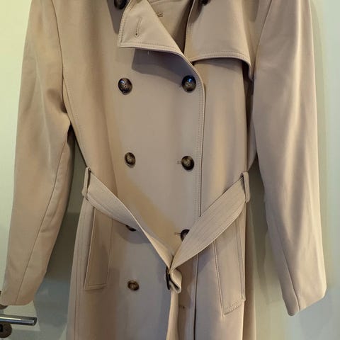 Selger en kort kåpe, eller jakke i beige. Krølletmykt ullstoff. Med lommer. Den er pent brukt,, og kjempegod å bruke.