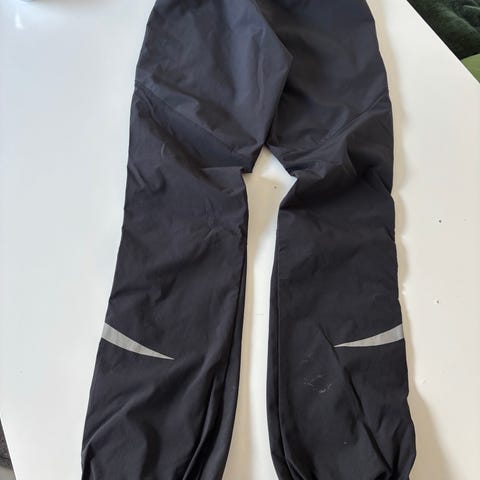 Selger en ubrukt overtrekksbukse i sort. Kan strammes nede og i livet. Lommer med glidelås.