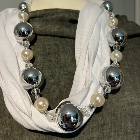 Pent skjerf med perler. Perlene sitter godt fast. Se bilder.