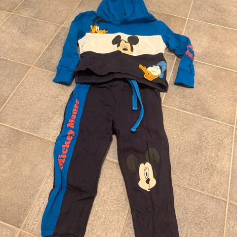 Selger supersøtt Disney Mickey Mouse sett bestående av genser og bukse i str 92. Helt ny - kun prøvd på én gang! Klippet av prislapp rett før prøving, men viste seg å være for liten.