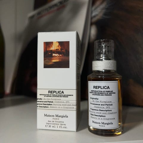 Maison Margiela Replica The Fireplace parfyme med en duft som kombinerer noter av vedfyrt brannsted, kastanje og varm tre. Flasken inneholder 100 ml parfyme.