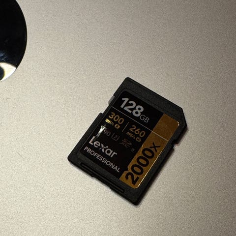 Selger et SD-kort fra Lexar med skrivehastighet på V90, som er den øverste klassifiseringen et SD-kort kan ha i forhold til hastighet. Dette lar deg filme eller ta bilder lenge og i ekstremt høy oppløsning (selv har jeg brukt det til å filme ukomprimert Blackmagic RAW i 6K, og det stoppet aldri før kortet ble fullt!), og med 128GB lagring på kortet, slik at det bør vare en stund, selv om man holder på med store datamengder.