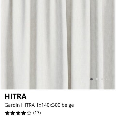 «Gardin i mykt materiale med semsket effekt. Gardinene har maljer, som gjør det enkelt å tre gardinen rett på stangen og gardinen henger i regelmessige og fine folder.»