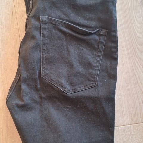 Lee dongeribukse, sort, str. 28/33, smal modell, selges. Brukt kun få ganger, er som ny. Kan sendes om kjøper betaler frakt.