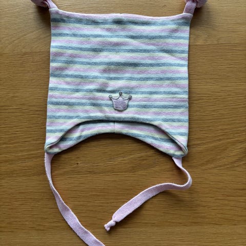 Selger en herlig Kivat-lue i myk økologisk bomull med søte dusker og en liten krone foran.