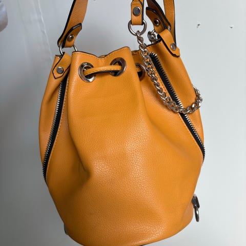 Svart Zara skulderveske med sølvfarget skulder kjede og detaljer. 100% polyester - litt ruskind aktig look.