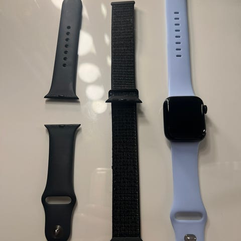 Hjelper min bror å selge Apple Watch! Den er veldig lite brukt! Noen få riper i skjermen, men ikke lett å se! Type SE, Gen 2, 40mm, Midnight Aliminium Case. Følger med 2 reimer og lader! Er i originalboks!🤗