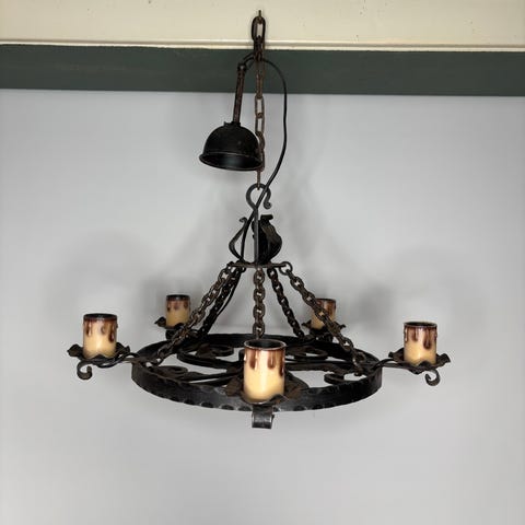Taklampe og 2 matchende vegglamper i sort smijern selges samlet.