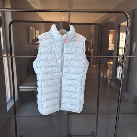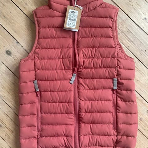Godt brukt men har mere bruk igjen. Denne er superlett og behagelig med 2 usynlige glidelåslommer og mykt fyll rundt halsen. Passer godt under en skalljakke eller som ytterplagg.