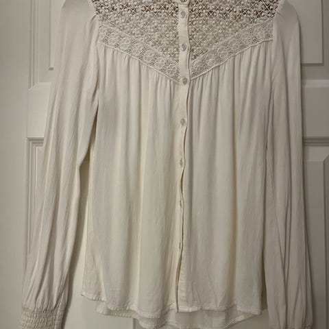 Selger denne utrolig fine blusen da den dessverre ikke blir brukt. Jeg er usikker på hvor og når den er kjøpt. Merkelappen mangler.