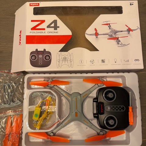 Syma Z4W drone med 480P WiFi-kamera, 10 minutters flytid, kompakt og sammenleggbar design. Utstyrt med funksjoner som enkel enknapps take-off og landing, høydehold og app-kontrollfunksjoner.