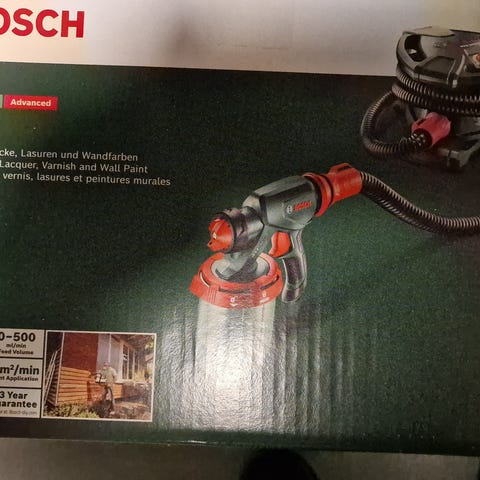 Bosch PFS 5000 E sprøytemaling med en kapasitet på 800 ml. Produktet har grønn og rød farge og er egnet for maling og lakkering av ulike overflater. Leveres med tilbehør for enkel påføring. Kjøpt sommeren 2025 og pent brukt. Selges i orginalinnpakning.