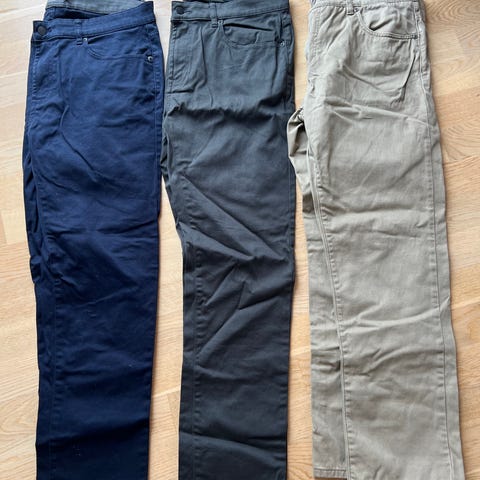 Buksene er meget lite brukt , dvs 1 til 3 ganger. Alle er hele og ingen huller o.l. Hentes Stavern eller sendes. Selges helst samlet for kr 250,- eller kr 100,- enkeltvis .
