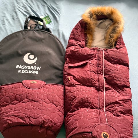 Regntrekk, myggnett, bilstoladapter og oppbevaringskurv til håndtaket