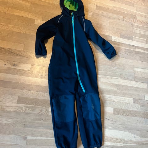 Name it Playtech barneheldress, mørk blå, størrelse 122, unisex. Dressen har mønster på overkropp og ben, med ensfargede ermer og underben. Laget for barn, designet for komfort og bevegelsesfrihet.