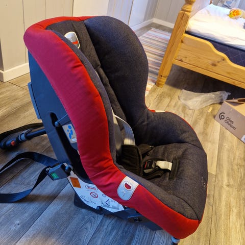 Gis bort. 9-25 kg bakovervendt. Ikke hurtigkobling. Tror det er kjøpt 2017/2018, så kun et par år igjen før det passerer 10-års grensa for anbefalt bruk.