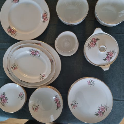 Serviset/fatene er i god forfatning med tanke på alder. De er hele og fine, og har normale bruksmerker.